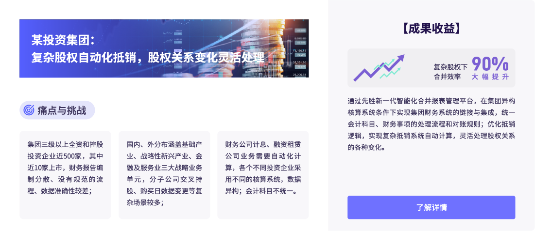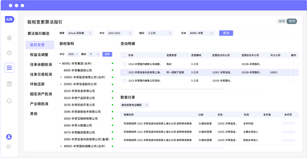 依托管法同源数据架构,支持企业复杂股权的秒级合并计算,同步保障合规披露与多维报告输出