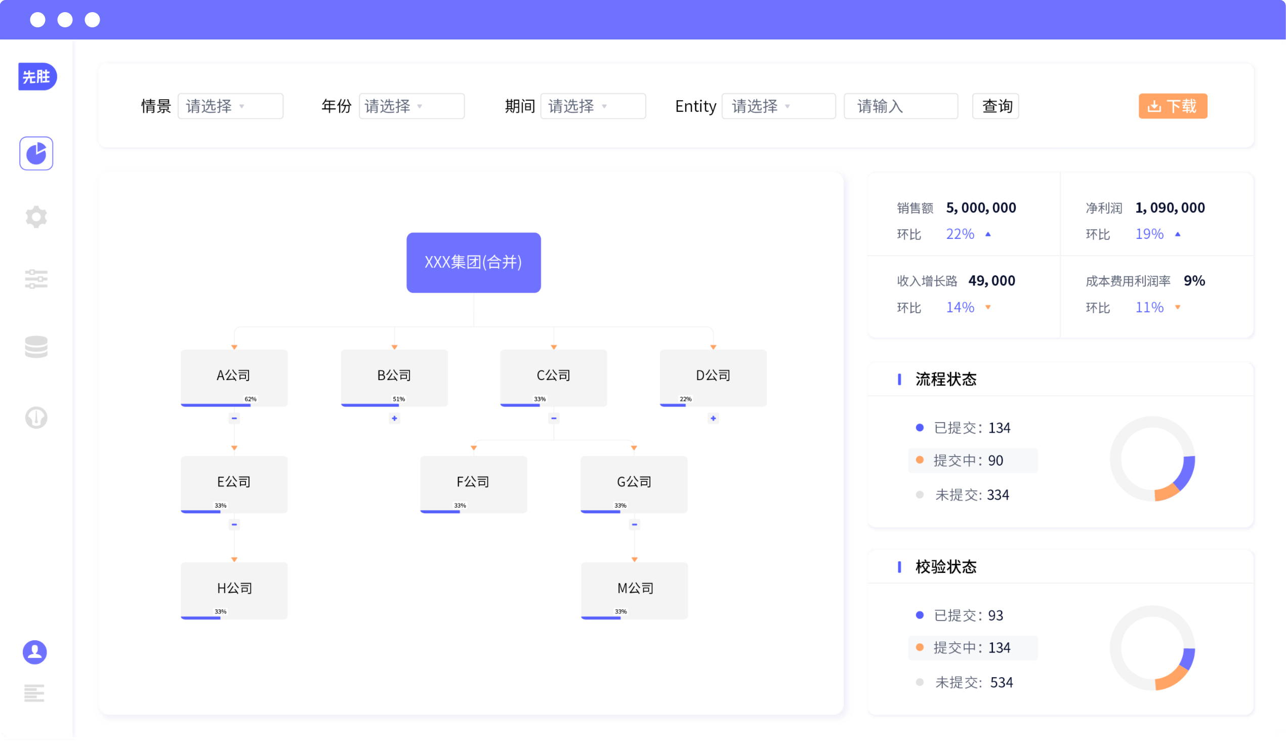 提供合并报表、全面预算、管理报表&经营分析3大业财产品