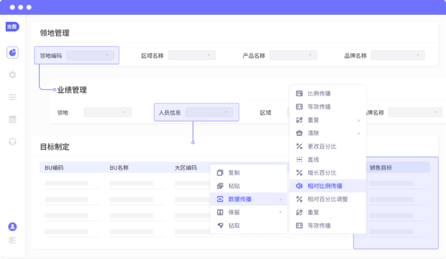 支持销售领地划分、人岗关系对应、销售指标申诉、未关联指标维护等