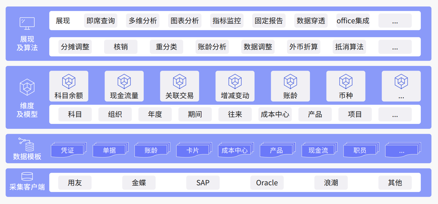 伴随着企业集团的多元化发展及快速扩张,企业的财务数据也进入爆发式增长时期,其增长规模、增长速度以及复杂度都不可同日而语。受限于企业的信息化程度,这些财务数据、报表数据往往分散存储于多个系统、多个服务器,甚至有些还存在于excel表中,不便于数据整合和数据分析应用。