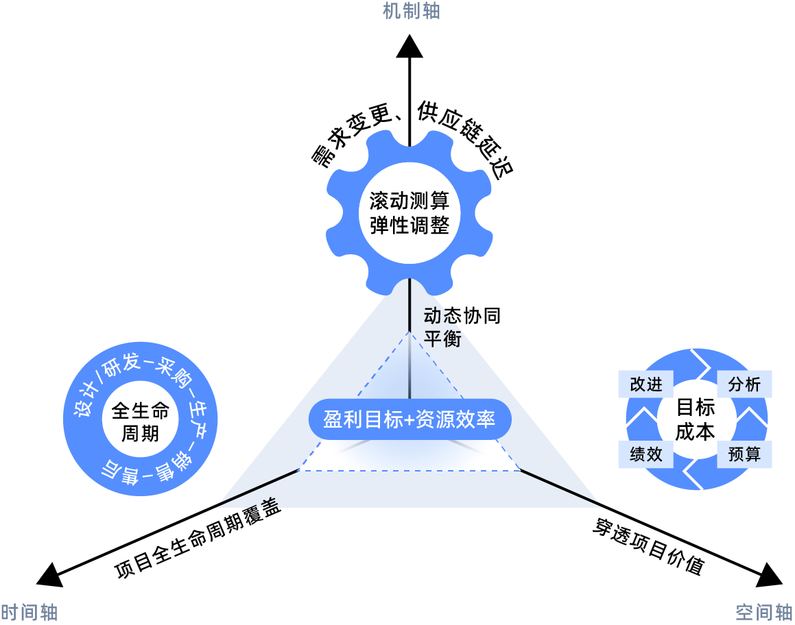 项目型制造的本质是为特定项目精准匹配资源、动态管控成本、确保最终盈利,其预算管理需构建 “时间—空间—机制” 三轴联动体系,以应对不确定性: