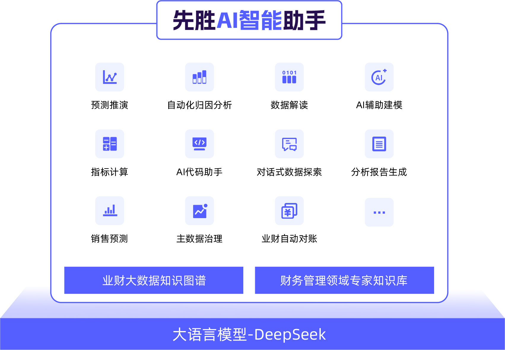 先胜解决方案的强大能力,构建于自主创新的“先胜云”业财数据智能平台之上: