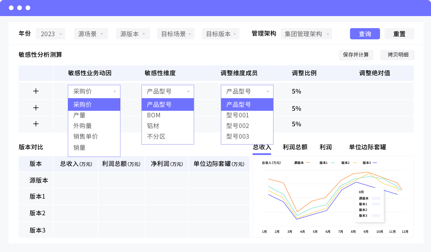 -下沉颗粒:依托BOM级预算,建立成本与物料、工序的精准关联,瞬时模拟价格波动与设计变更对利润的全局影响,精准定位差异。