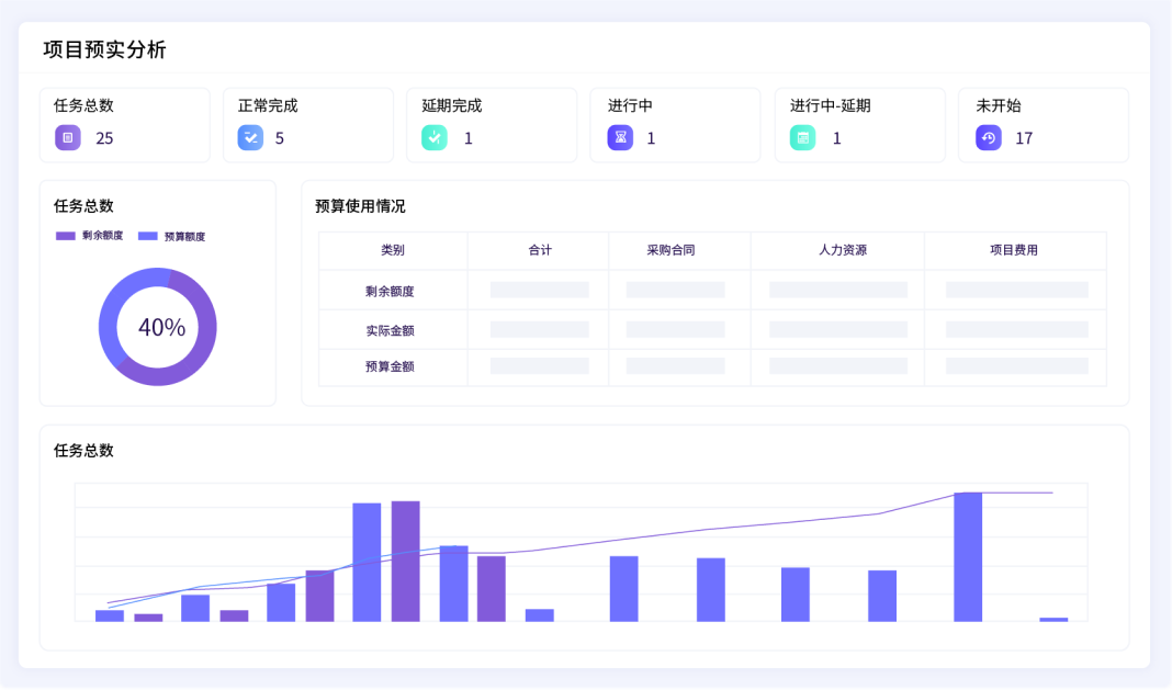 项目自动追踪及管控 项目成本自动归集和付款计划管控,保障投入可控,及时进行风险预警